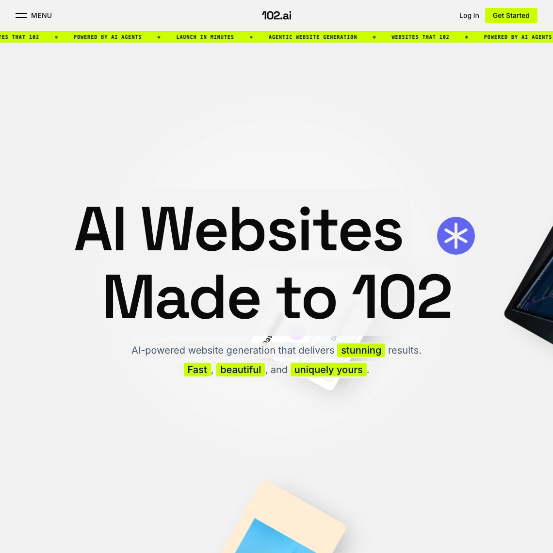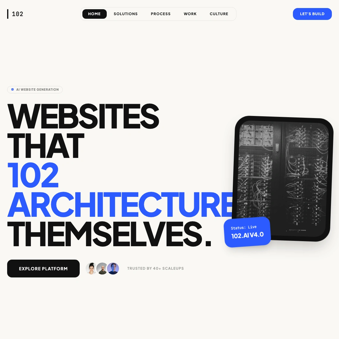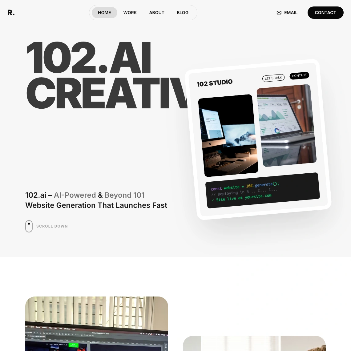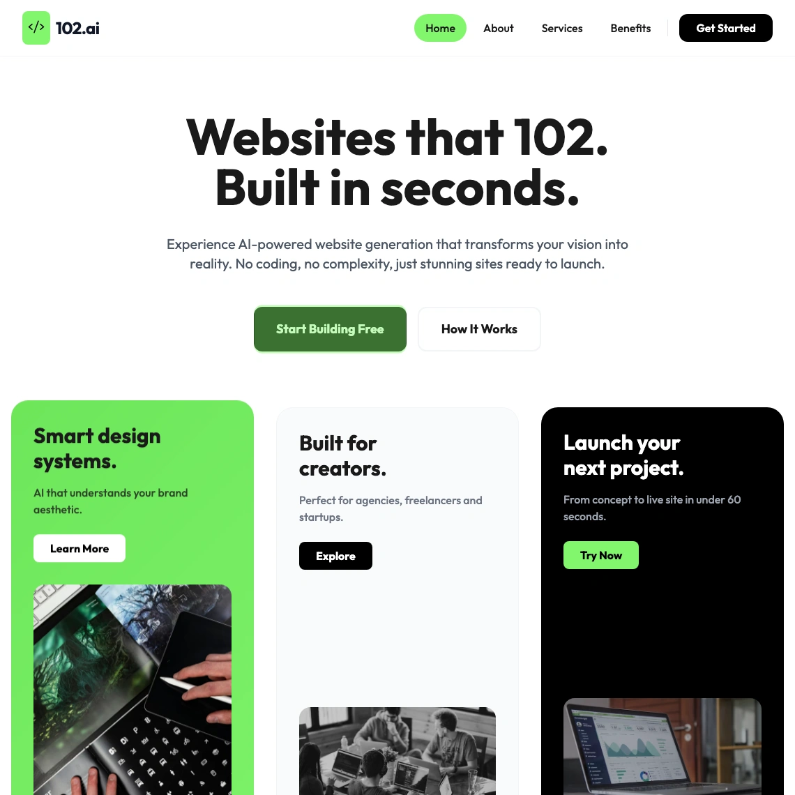 102.ai rebuilds your site to look better, load faster, and rank higher. Three options, delivered in under 102 minutes. Performance by default.