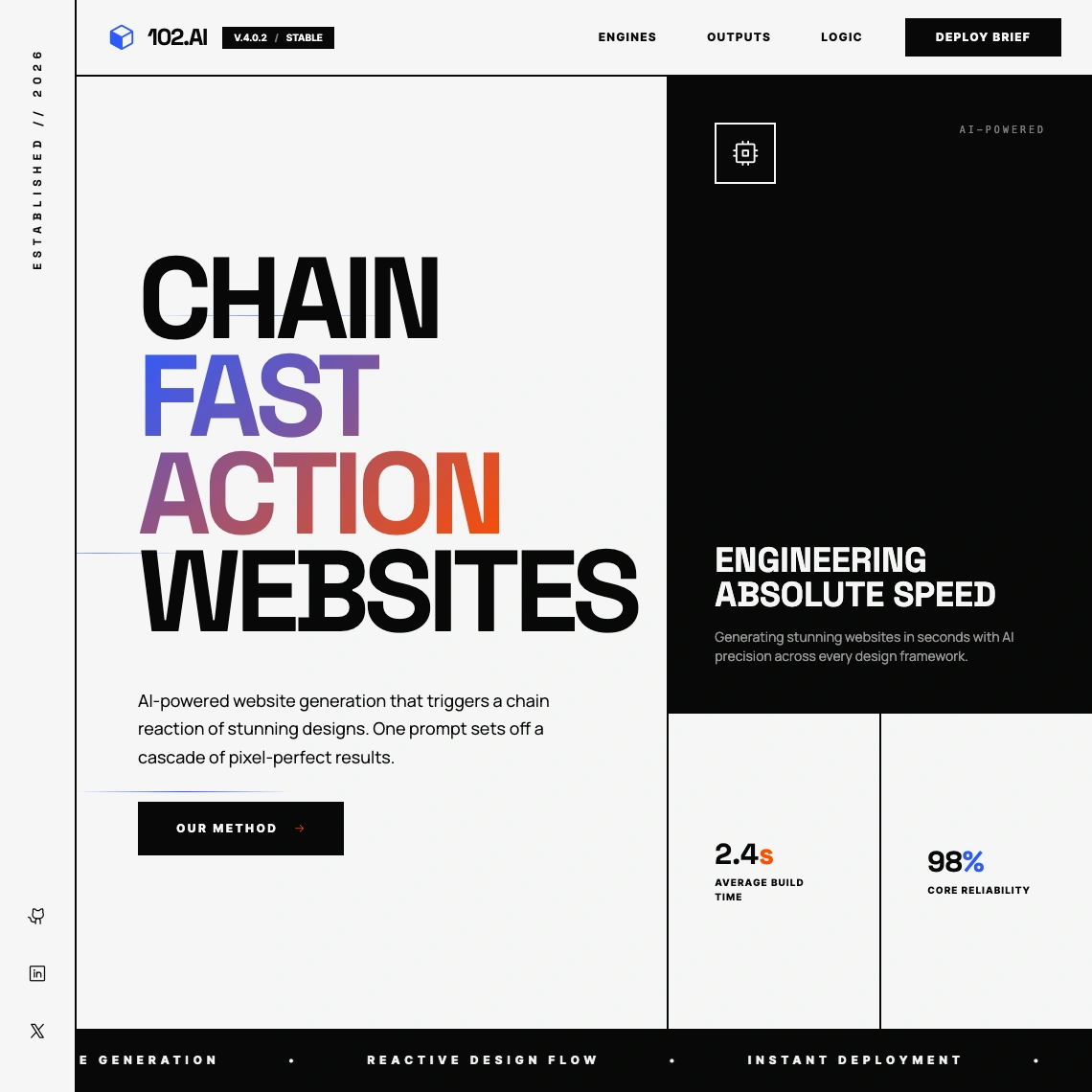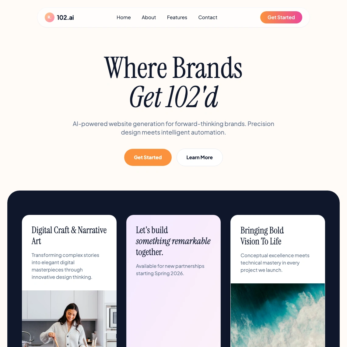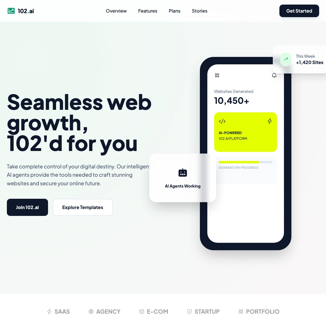 102.ai rebuilds your site to look better, load faster, and rank higher. Three options, delivered in under 102 minutes. Performance by default.