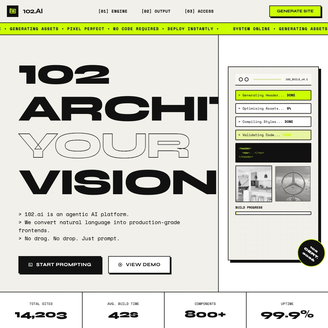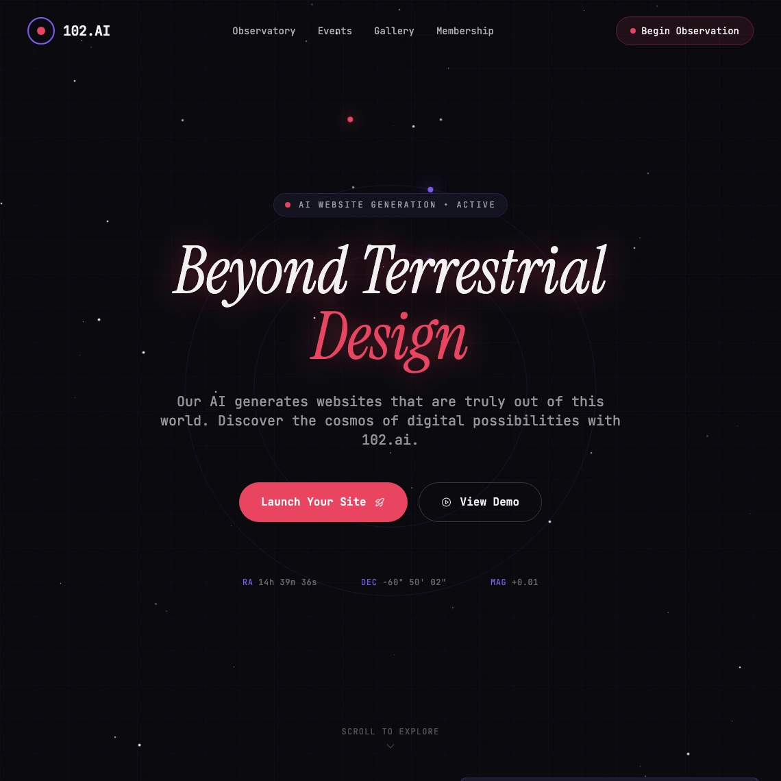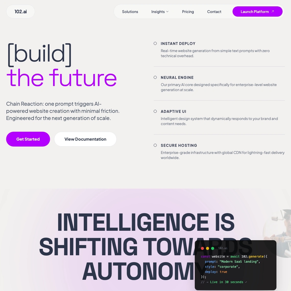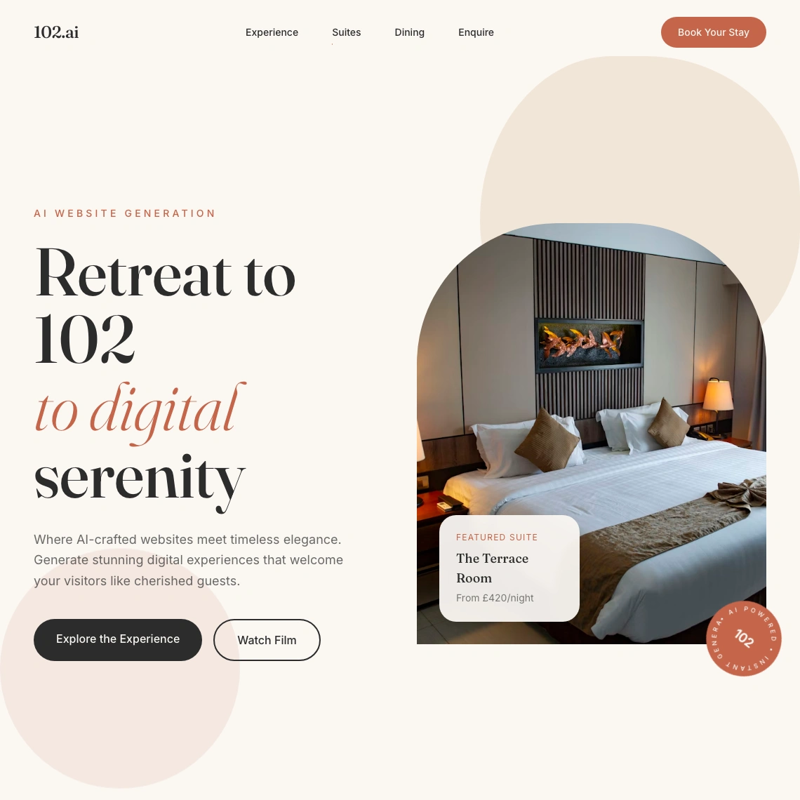 102.ai rebuilds your site to look better, load faster, and rank higher. Three options, delivered in under 102 minutes. Performance by default.